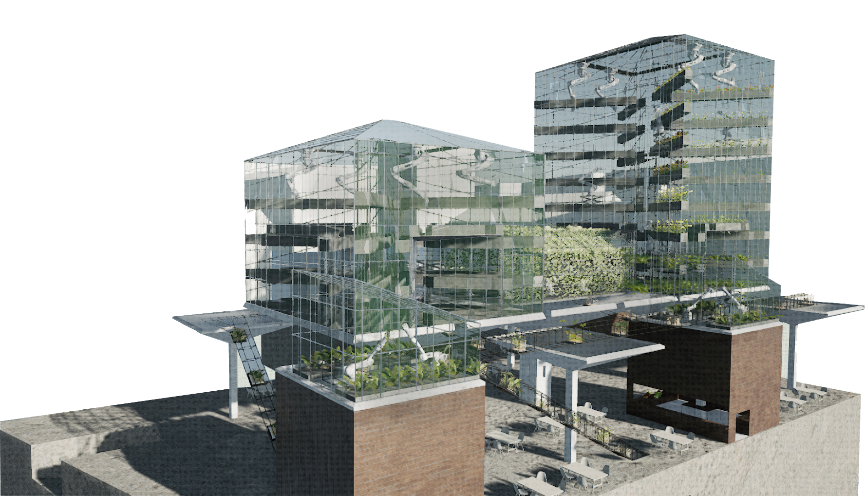 "Edible Jungles" is a transformative urban farming project located in the Torre Spaccata neighborhood. This initiative aims to revitalize the disused Ex Mercato di Torre Spaccata site and address the community's need for fresh food. By incorporating innovative technology and automation, the project will establish a highly efficient, self-operating greenhouse industry.